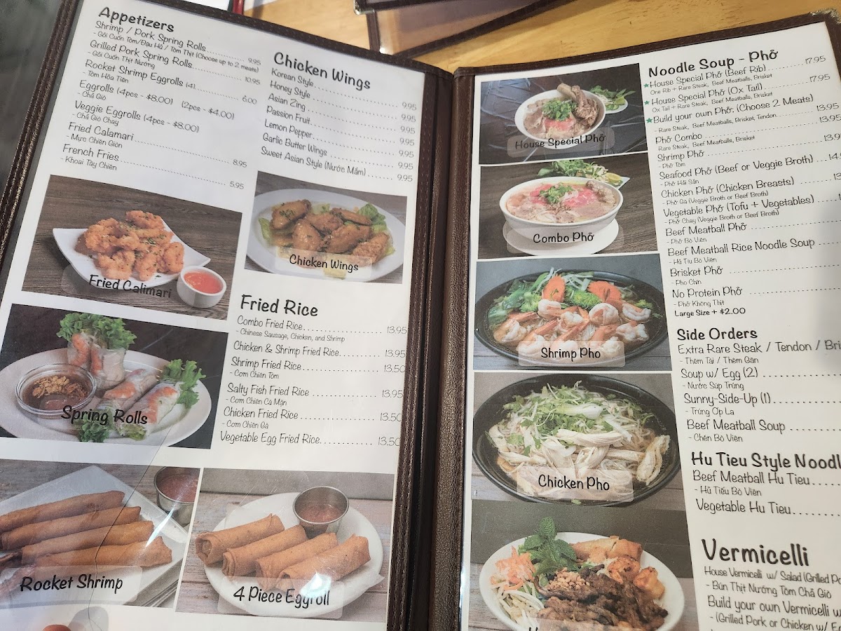 Shrimp Pho includes assorted veggies and fresh shrimp